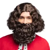 118 118 perukset som inkluderar en brun fluffig peruk samt en matchande självhäftande mustasch.